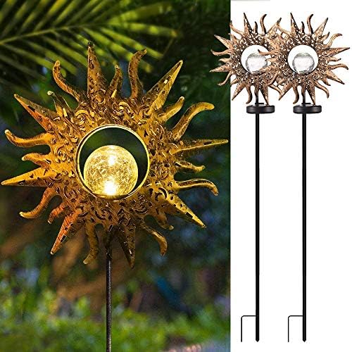 Photo voltaic Lights Outside Ornamental, Eoyizw Photo voltaic Backyard Lights 2 Pack Steel Solar Crackle Glass Globe Stake Waterproof Backyard Decor for Outdoors Lights Pathway, Porch, Panorama Decoration