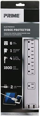 Be the first to review “Prime Wire & Cable PB525106 6-Outlet Electronics Surge Protector with 14/3 SJT 4-Toes Twine and USB Charger, White”
