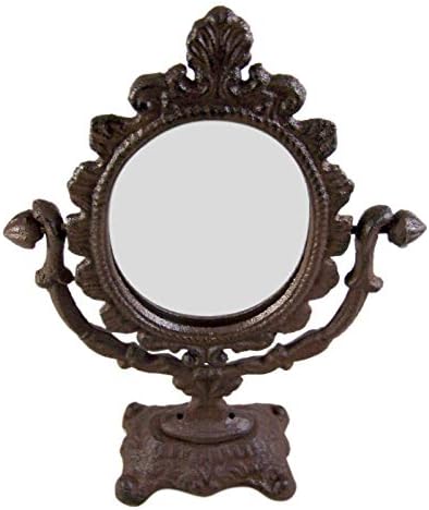 Materials – Solid Iron — Measurement – 11 1/2 Inch (L) x 7 1/2 Inch (W) — An ornate body surrounding a mirror — The bottom is sturdy and huge — Excellent for tabletops or counters