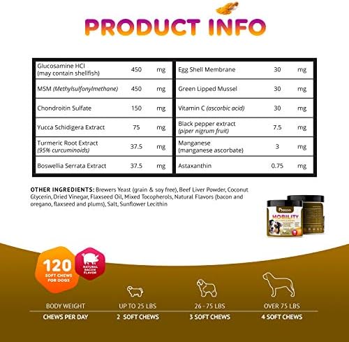 IMPROVES MOBILITY & AGILITY : Our canine joint and hip complement is packed stuffed with canine agility supporting goodies that can depart him bursting with tail wagging power. A potent mix of Turmeric Root and Glucosamine for canine promotes hip and joint assist and is an excellent help in case your pet has problem climbing stairs, working and taking part in on account of swollen, delicate joints.