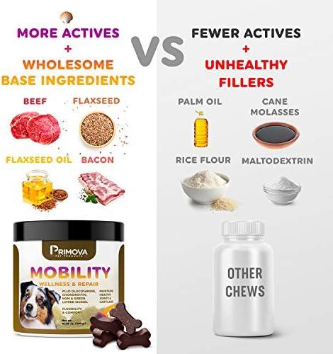 Primova Glucosamine for Canine – Superior Hip & Joint Assist for Canine with Chondroitin, Turmeric, MSM, Manganese and Astaxanthin – Canine Joint Complement Mushy Chews for Arthritis Ache Aid
