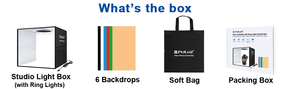 【What’s within the field】Order this product, You may get a 11.8 inch black photograph studio mild field with 6 colour backdrops. (Black、White、Yellow、Inexperienced、Blue、Purple)