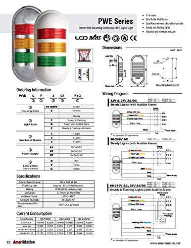 PWEZ-3FF-RYG, Wall Mount LED Sign Mild, Purple/yellowgreen Coloration 3 Stack, Regular/flash/80dB Alarm, 90-240V AC, IP65
