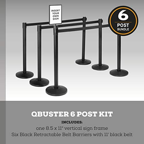 Qbuster Retractable Belt Stanchion Security Barrier Put up with 11 ft. Belt and Signal Holder (6 Put up Bundle)