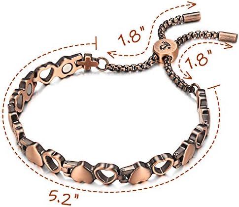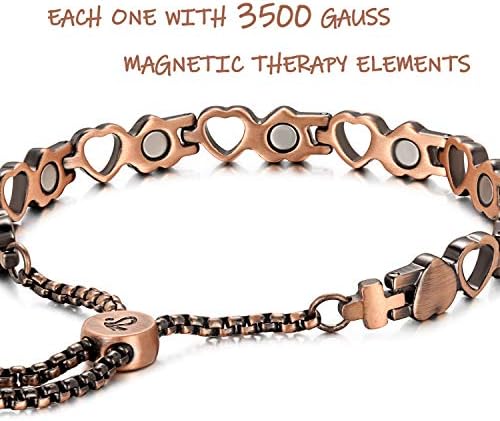 RainSo Ladies Pure Copper Magnetic Remedy Well being Care Bracelets Ache Aid for Arthritis Adjustable Design with Show Field (Coronary heart Design)