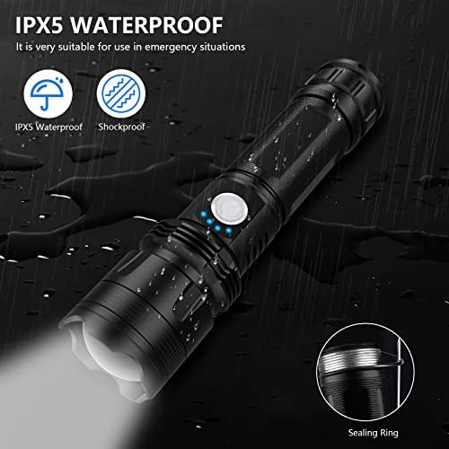 Rechargeable Flashlights Excessive Lumens, 100000 Lumen Tremendous Shiny LED Flash Gentle with USB Cable, 5 Modes Zoomable IPX5 Waterproof Handheld Flashlight for Emergency Tenting Mountain climbing Biking