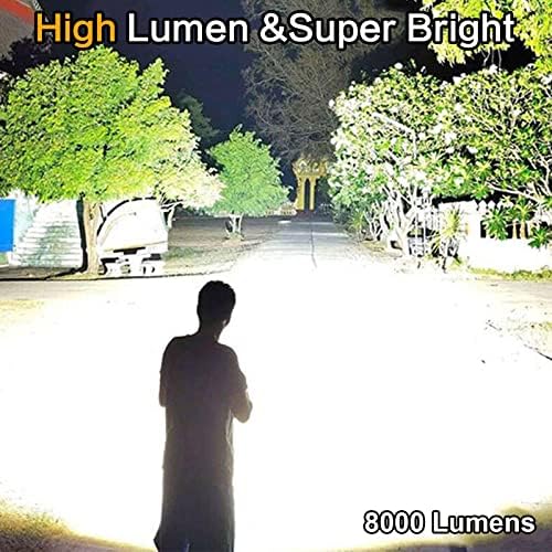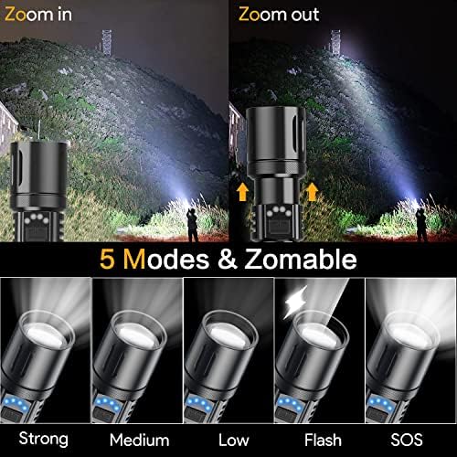Rechargeable Flashlights Excessive Lumens, 8000 Lumens Tremendous Vivid Small LED Tactical Flashlight with 3000mAh Battery, Zoomable, Waterproof, 5 Modes, Highly effective Handheld Flashlight for Tenting Emergency