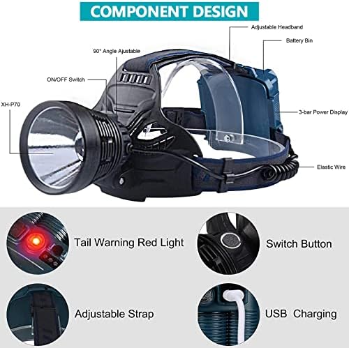 Rechargeable Headlamp, 90000 Lumen Tremendous Vivid LED Headlamp with 4 Lighting Modes & Warn Gentle, IPX6 Waterproof Highly effective Handheld Adjustable Head lamp for Tenting Searching
