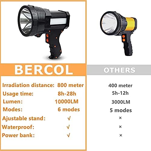 Rechargeable Highlight Flashlights Excessive Lumens, 10000 Lumens LED Highlight Flood Tenting Flashlight, Lengthy Lasting ΒATTERY & Foldable Tripod & Energy Financial institution, Handheld Highlight for Searching, Fishing