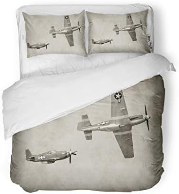 rouihot Quilt Cowl Set Queen/Full Measurement Ww2 World Struggle Ii Fighter Airplanes in Flight Second 3 Piece Microfiber Material Decor Bedding Units for Bed room
