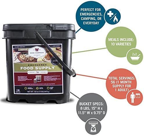 Product inside this bucket consists of: – Savory Stroganoff (4 Servings) – Chili Macaroni (4 Servings) – Pasta Alfredo (4 Servings) – Creamy Pasta and Vegetable Rotini (4 Servings) – Teriyaki and Rice (4 Servings)