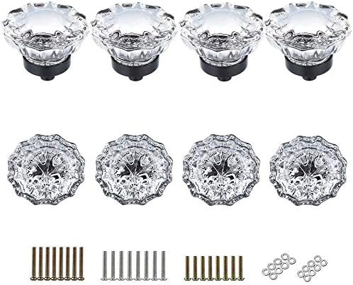 SHINY HANDLES 8 Pcs Glass Knobs Classic Crystal Glass Drawer Pulls Knobs Dresser Knob Cupboard Knobs,Matte Black, 1.5×1.4inch,3 Sorts Screws,8pcs/Pack, Manufacturing unit Provide