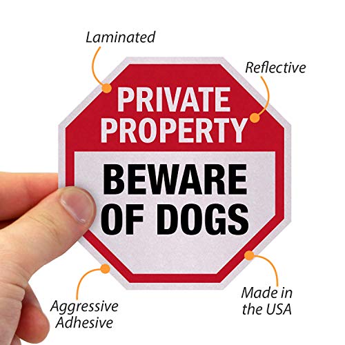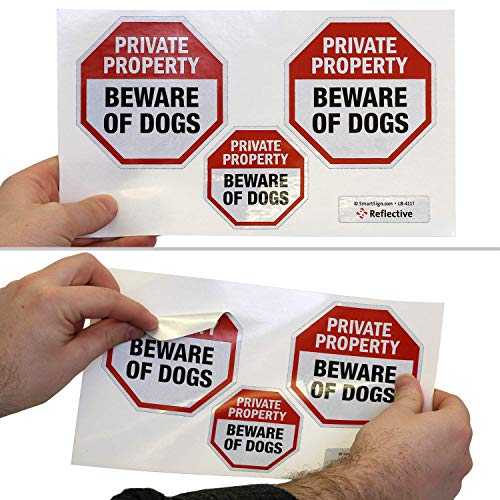 SmartSign Personal Property Watch out for Canines Decals Set |Two 4″x4″ & One 2.75″x2.75″ Reflective Laminated Adhesive Labels/Stickers