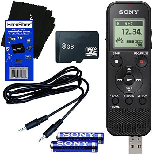 Sony ICD-PX370 Mono Digital Voice Recorder with Constructed-in 4GB & Direct USB + 8GB Micro SDHC Reminiscence Card + Auxiliary Cable + AAA Batteries + HeroFiber Extremely Mild Cleansing Material