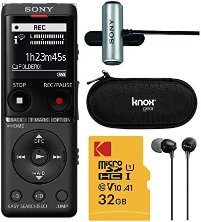 BUNDLE INCLUDES: Sony ICD-UX570 Sequence UX570 Digital Voice Recorder (Black), Sony Clip-Fashion Omni-Directional Stereo Microphone, Kodak 32GB Class 10 UHS-I U1 microSDHC Card with Adapter, Sony Trend Colour EX Sequence Earbuds (Black), and Knox Gear Hardshell Case for Sony Audio Recorders (Black)