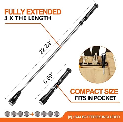 360°FLEXIBLE TELESCOPING MAGNET: The 360°rotating versatile magnet instrument will be expanded to 22.24 inches, which will be flexibly bent, illuminated, and magnetized. Moreover, the magnetic instrument with a pocket clip and the non-slip floor is handy to hold and never straightforward to slide off. The bendable flashlight will probably be distinctive presents for a constructor, woodworking, automotive technician when repairing, fixing, or engaged on the engine. Cool devices save for later gadgets. “