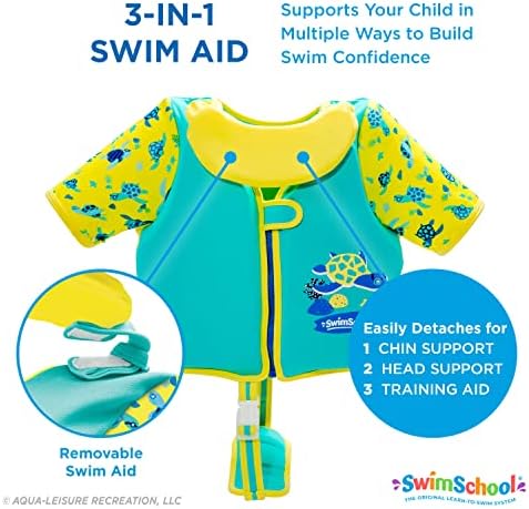 SwimSchool Swim Coach Vest – Simple On & Off Youngsters Swimming Vest – Sizes: Small/Medium As much as 33 lbs. & Medium/Massive As much as 50 lbs. – Colours: Blue, Orange, Pink & Seafoam
