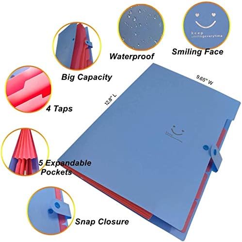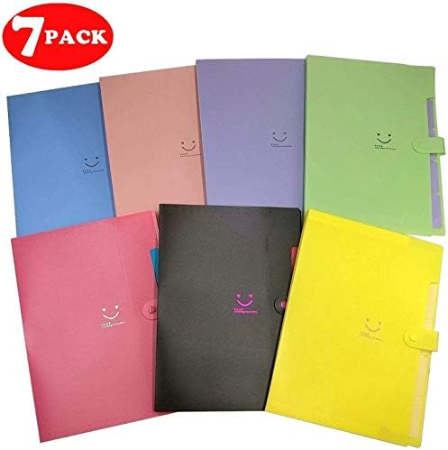 TDRENERGY 7-Pack Increasing Accordion File Folders Doc Organizer for Workplace College File Submitting Luggage Smiling Face Plastic Letter A4 Paper Dimension with 5 Pockets & Snap Closure, Multi-Colours