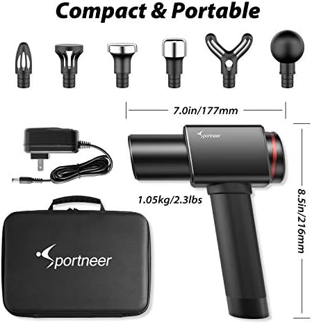 Therapeutic massage Gun, Sportneer Deep Tissue Percussion Muscle Massager Gun for Ache Reduction – Handheld Electrical Physique Therapeutic massage Gun for Athletes, New Model Tremendous Quiet Sports activities Drill Brushless Motor,Black