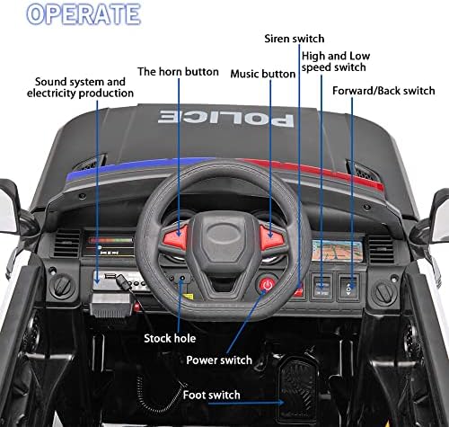 【MULTIPUL FUNCTIONS】Experience on cop automobile, Actual megaphone, working police lights and headlights, horn, rear view mirror, MP3 enter and performs, excessive / center/low velocity change, with doorways that may open and shut. Giving your little one a near-real Police automobile driving expertise.