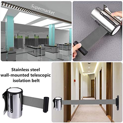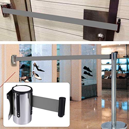 TOYANDONA Crowd Management Wall Mount 5m Retractable Barrier Belt Telescopic Stanchion Belt Security Crowd Queue Fence Belt for Financial institution Airport Resort Firm (Gray)