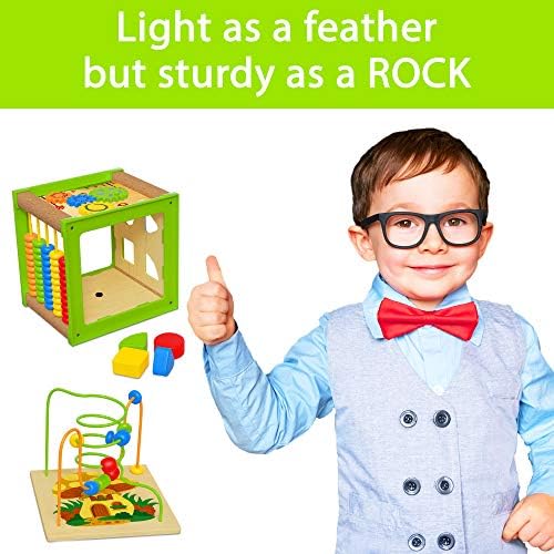 💙LIGHT AND COMPACT – The highest and the underside of the bead dice are indifferent and they are often performed with individually. As well as, the highest flips over and matches contained in the field for simple storing. This makes the entire picket toy simply moveable and wonderful for toddler journey toy. Exercise dice measurement: w: 7.08 x d: 7.08 x h: 12.21 inches.