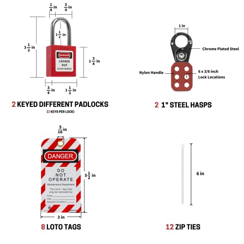 TRADESAFE Lockout Tagout Equipment with Hasps, Loto Tags, Crimson Security Padlocks | OSHA Compliance for Electrical Lock Out Tag Out Kits, Locks, and Loto Lock Set (2 Keys Per Lock)