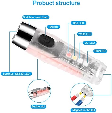 【keychain flashlights 11 Modes Lighting】: Power saving, low gentle, medium gentle, robust gentle, tremendous brilliant gentle. Six-speed aspect gentle mode: white gentle, white gentle strobe, ultraviolet gentle, pink gentle, pink gentle strobe, pink and blue strobe.