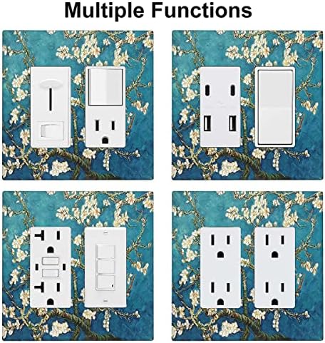 Uanvaha Artwork Flower Portray 2 Gang Wall Plate Van Gogh Almond Blossoms Wall Plates for Electrical Shops Change Cowl Wall Decor Blue