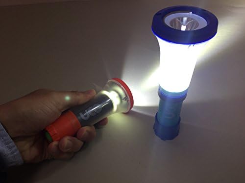 Frosted globe slides up for lantern mode and again down for flashlight mode; Contains D-Ring for simple hanging/attachment