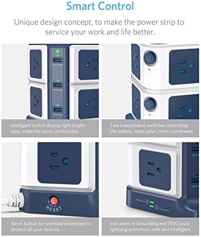 8 AC Retailers Surge Protector(1500J) and 6-port USB Energy Strip with 6-foot heavy-duty energy twine(14AWG),defending your TV,pc,router,laptop computer,printer,modem,speaker and different invaluable gadgets towards surges and spikes