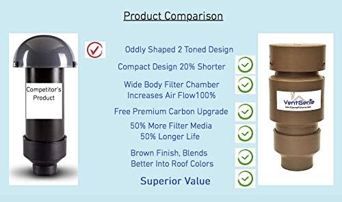 The VentGenie household of sewer/ septic vent pipe filters will immediately remove the foul “rotten egg” scent originating out of your rooftop plumbing vent pipes. Assured. Your plumbing vents are instantly tied to the sewer/ septic system, they should be to ensure that correct drain operate. Usually gasses that rise from vents are carried away by the wind, often the wind can push these gasses all the way down to your garden and patio and spoil the social gathering. When you have this drawback, you will want to put in a VentGenie on every of your vent pipes. VentGenie suits in your vent pipes with out instruments or glue and is charged with a premium high quality Activated Carbon that’s particularly manufactured to seize the Hydrogen Sulfide (smelly fuel) molecule and is the best obtainable. In comparison with the main competitor, VentGenie’s Patent Pending design is painted “RoofCamo” and is 20% shorter to raised mix into your roof’s scape. VentGenie’s design will increase airflow by the filter by 100% and comprises 50% extra Activated Carbon than the main model so it’ll final 50% longer earlier than the Activated Carbon requires substitute, often 3-7 years. Evaluate VentGenie to the main model and all different filters, we’re assured you will conclude it is a superior filter and the very best worth. VentGenie is out there in a rooftop mount mannequin (straightforward set up) or an InLine mannequin that’s utterly hid within the attic (requires pipe chopping, however straightforward DIY). It is necessary to notice VentGenie will solely remove odors that originate at your plumbing vent pipes. Indoor odors are brought on by dry drain traps and bathroom wax rings which have failed. VentGenie can’t repair indoor odors, until these odor are introduced inside by an open window close to a plumbing vent pipe. VentGenie will immediately remove plumbing vent odors. Assured. We promise. In case your not “5 Star” happy, return VentGenie inside 100 days for a full refund.