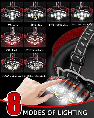 Victoper Rechargeable Headlamp, 8 LED 18000 Excessive Lumen Shiny Head Lamp with Purple Mild, Light-weight USB Head Mild, 8 Mode Waterproof Head Flashlight for Outside Operating Looking Climbing Tenting Gear