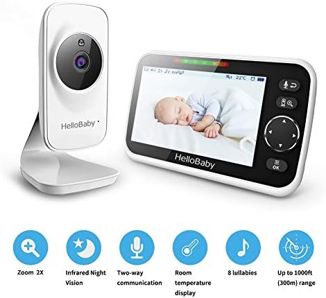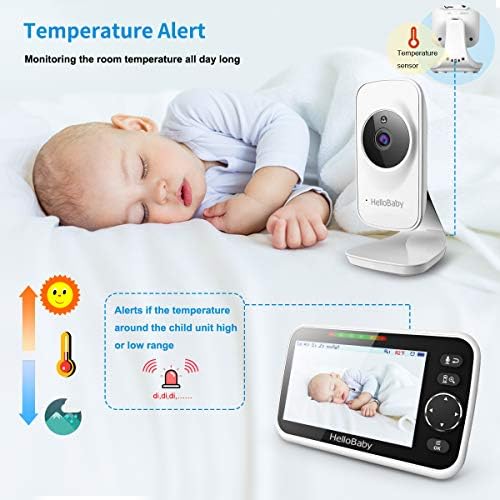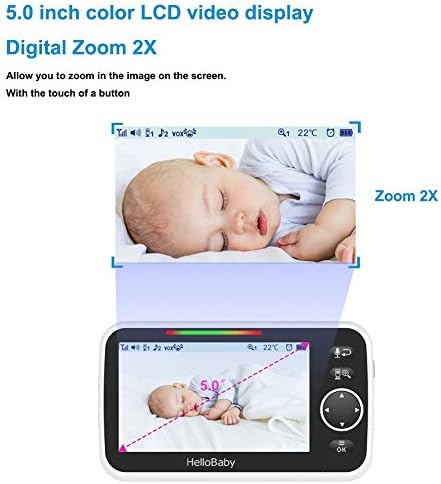 Video Child Monitor with Digicam and Audio, 5″ Coloration LCD Display, HelloBaby Monitor Digicam, Infrared Night time Imaginative and prescient, Temperature Show, Lullaby, Two Manner Audio and VOX Mode