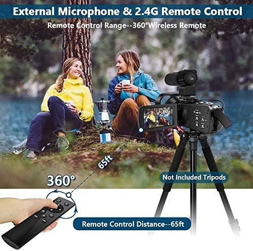 3 Inch IPS Contact Display screen makes it straightforward to function and helpful to shoot and immediately play again wonderful pictures and movies. 360° rotation display makes selfies tremendous straightforward. It has customary tripod gap (tripod not included).The camcorder could be managed sensitively from any route to inside 65 ft even with a hood with 2.4G distant management.