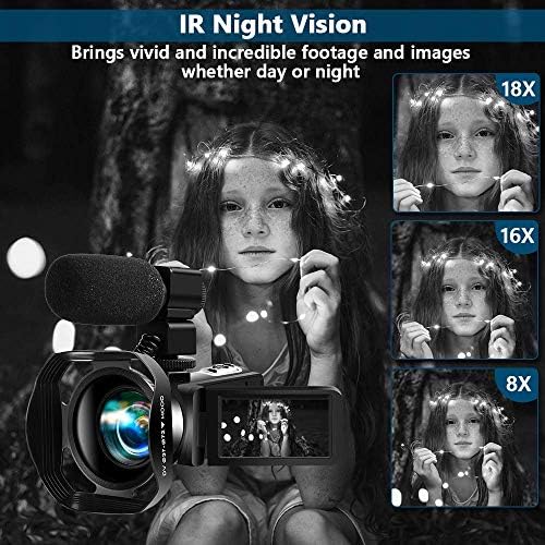 【IR Night time Imaginative and prescient & 18X Digital Zoom】: This 4k video digital camera helps IR night time imaginative and prescient, which may take high-definition pictures in dim gentle and even darkish locations, and the colour is black and white. The digital camera is provided with an 18x digital zoom. There is no such thing as a strain within the distance, and you may see clearly within the distance by zooming out and in.