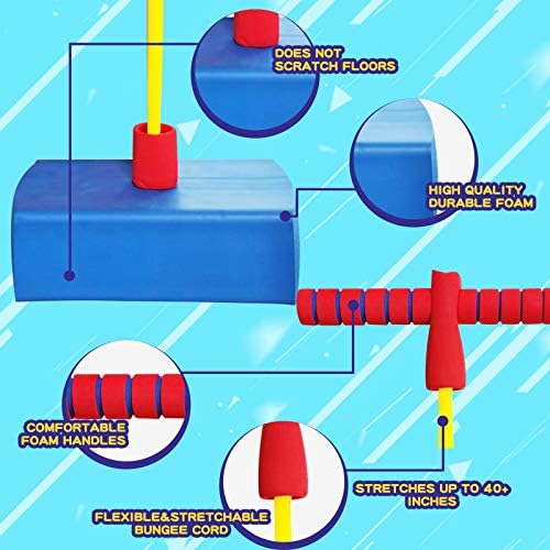 HIGH QUALITY AND STURDY: This foam pogo jumper is made out of a delicate sturdy foam base, a Sturdy Stretchy bungee and Snug Foam Handles that ensures protected play indoors or outside.