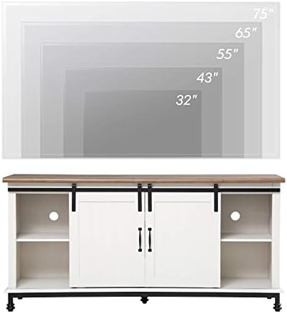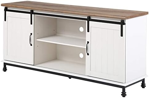 WAMPAT Farmhouse TV Stand for TVs As much as 65″ with Furnishings Security Straps, Sliding Barn Door Leisure Heart with Storage& Adjustable Cabinets& Laborious Steel Legs, 58 inch, Rustic White Oak