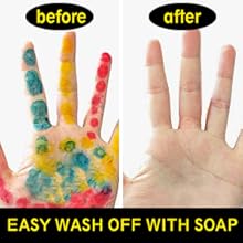 【Washable ink & Non-leaking】No extra fear about mess and soiled, it’s washable and simply clear ink. Since all ink is contained contained in the marker barrel, there are not any paint bottles to spill or messes to scrub up.