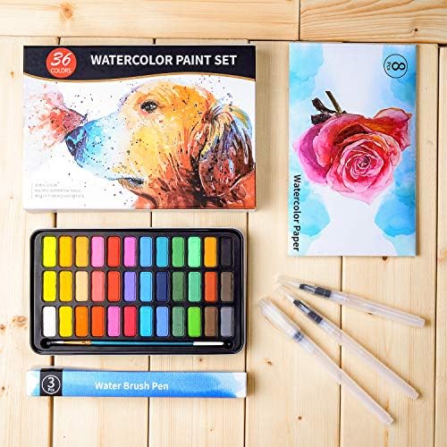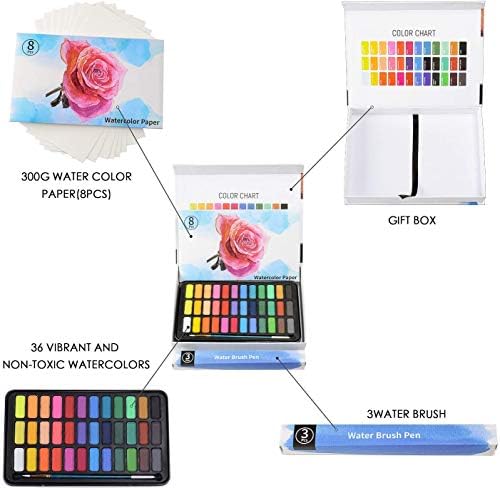 Excessive High quality: the great equipment comes with 36 vivid colours, 3 items good high quality water brush pens, 1piece element paint brush and eight sheets of 300g watercolor paper.