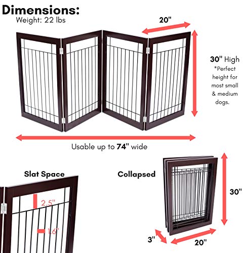 Web’s Finest Conventional Wire Canine Gate – 4 Panel – 30 Inch Tall Pet Pet Security Fence – Totally Assembled – Sturdy MDF – Stairs Folding Z Form Indoor Doorway Corridor Free Standing – Espresso