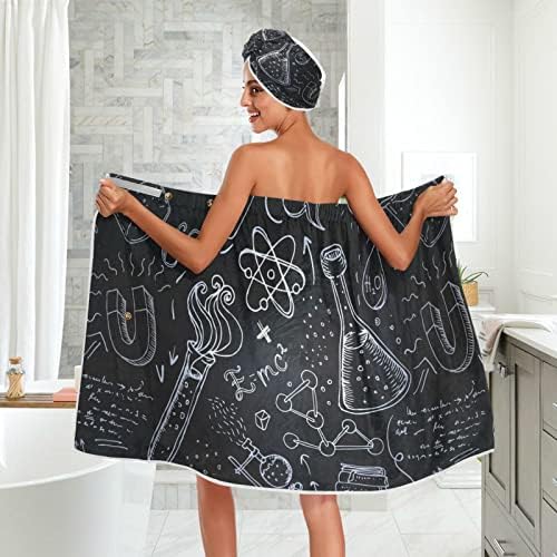 White Science Lab Objects Doodles on Chalkboard 3 Pcs Set of Towel Wrap, Bathrobe with 1 Adjustable Closure Bathe Wrap, 1 Dry Hair Towel, 1 Headband for Bathtub Bathe Sauna