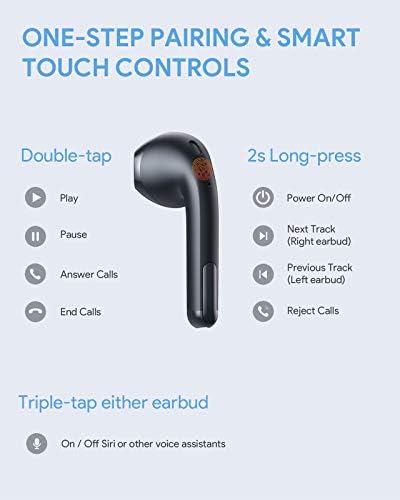 【One-Step Pairing & Good Contact Controls】The wi-fi earbuds will energy on and pair routinely if you take them out of the charging case. Simply management your music, calls, and voice assistant with contact controls for whole freedom. You should use one earbud independently or two earbuds on the similar time to fit your totally different wants