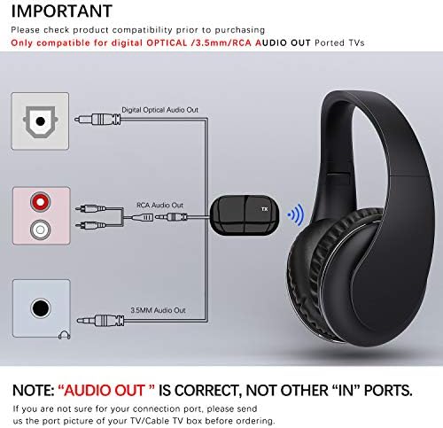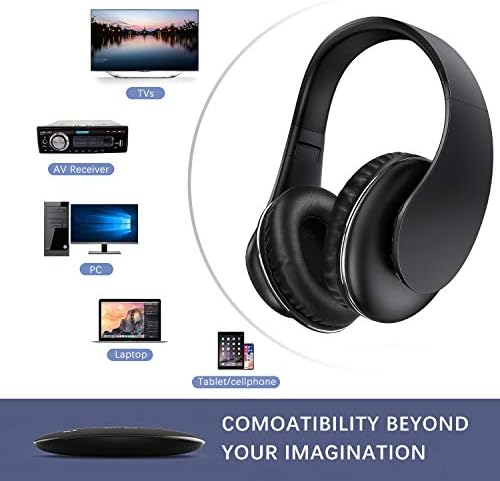 Wi-fi TV Headphones – Jelly Comb Over Ear Headsets with 2.4GHz RF Transmitter(Help Optical, 3.5mm AUX, RCA Audio Out), 100ft Wi-fi Vary and Rechargeable 10 Hour Battery