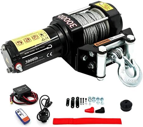Wild Bear 12V 3000LBS /1361kg Electrical Winch Metal Cable Instruments Match Automotive ATV UTV (3000)