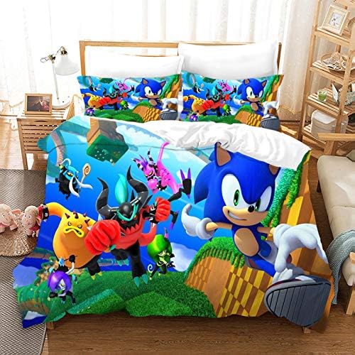 【Fashion】There are a lot of Sonic sample bedding units,Is the kid’s favourite Anime theme,Stimulate kids’s creativeness and creativity.3D Printing paiting Quilt Cowl Set, Appropriate For Your Room Decor.