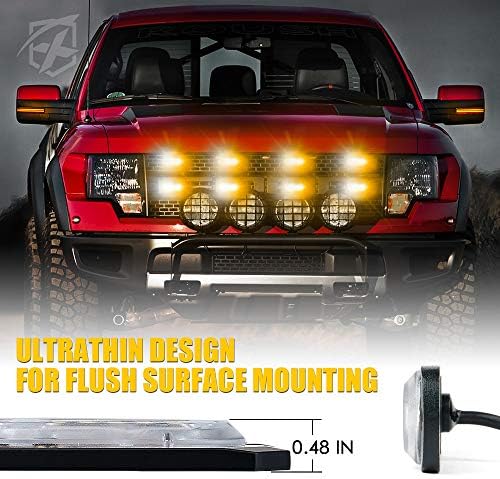 Xprite LED Floor Mount Strobe Lights Equipment, White Amber Grill Grille Emergency Warning Flashing Marker Mild Warning Mild Assemblies for Vans Automobiles ATV RV Automobiles Van – 8PCS