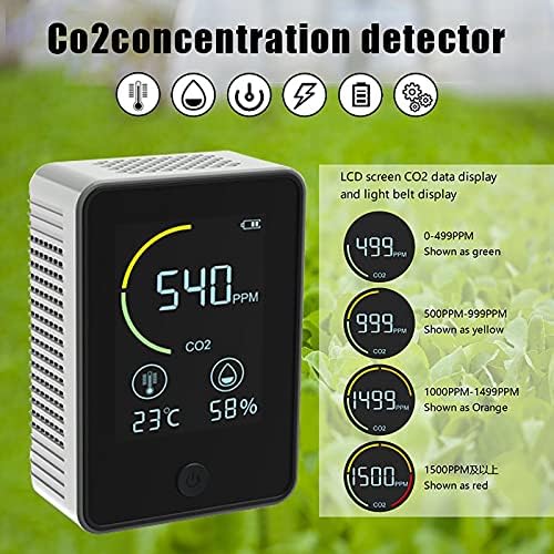 XUANOU 3-in-1 Air Carbon Dioxide Detector, Air Monitor CO2 Carbon Dioxide Detector Greenhouse Warehouse Air High quality Temperature Humidity Monitor Quick Measurement Meter (Black)