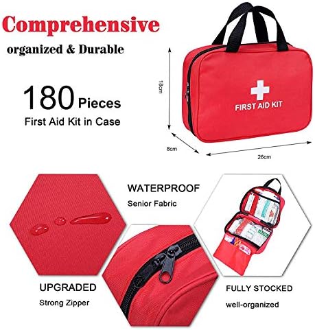 180 items of complete first assist remedy merchandise are available fashionable, full equipment and simple opening. Consists of emergency blanket, bandage, scissors for residence, automotive, tenting, workplace, boat and journey