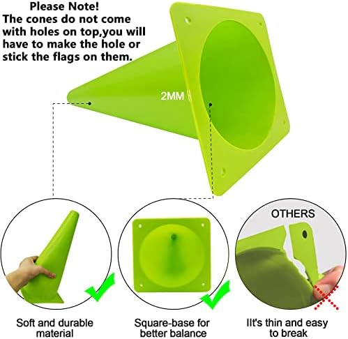 🏁HIGH VISIBLE COLOR,GREAT VALUE: Vivid inexperienced coloration plastic drill cones with checkered flags are nonbreakable, sturdy and straightforward to hold. Use adhesive tape to connect flags or simply drill a gap on the highest of cones to carry flags in place for an velocity agility drills really feel.